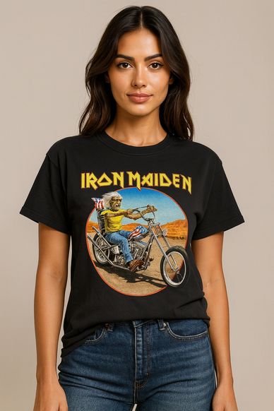 Authentic vintage Iron Maiden tour tee featuring the classic biker-Eddie artwork — a staple for any collector or metal fan. This officially licensed shirt captures 80s rock attitude with bold colors and soft-worn cotton. Pair it with denim or leather for a timeless grunge-meets-luxury street look.